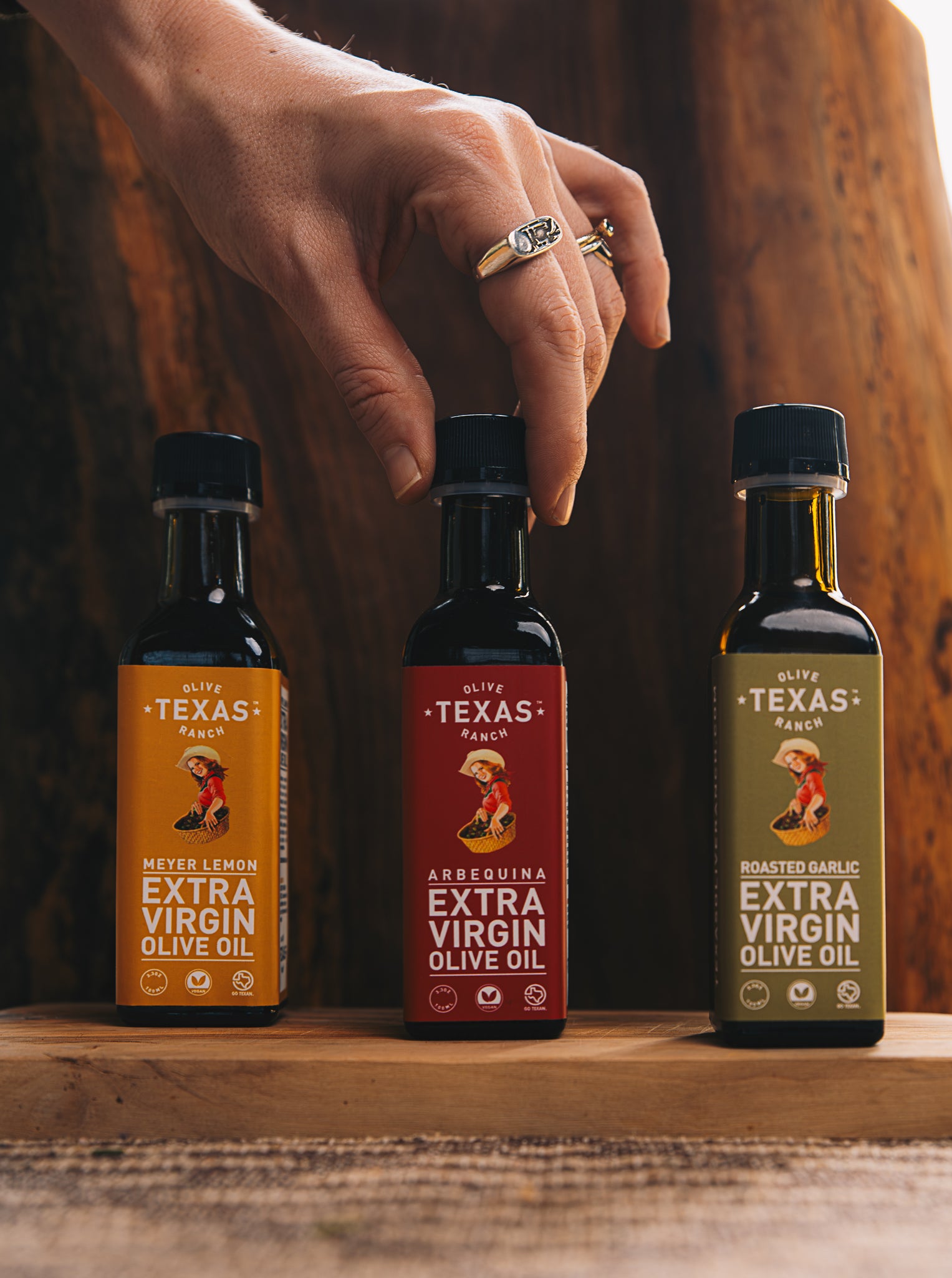 In this Gift Set, you get three bottles extra virgin olive oil and/or oak-aged balsamic vinegar of 100 mL each.