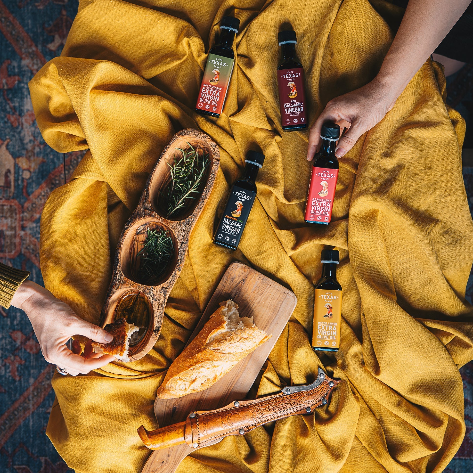 Our Farm-Fresh Gift Boxes are freshly-pressed, bottled and blended for adventurous-infused olive oils and balsamic vinegars for your favorite foodie. Inspired by our passion for working hard, this year’s holiday gift boxes celebrate the stunning stitching from our favorite pair of boots that have walked with us every step of the way. It takes a lot to make good food grow, and we’re excited to celebrate the farm-fresh and boots-on-the-ground work it takes to happen!